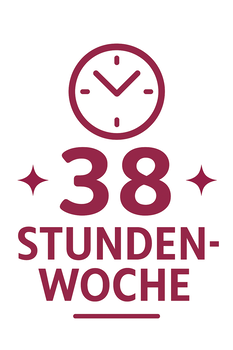 Als Mitarbeiterin oder Mitarbeiter der Stiftung profizierst du von unserer 38-Stunden-Woche - täglich. Dank der reduzierten Wochenarbeitszeit endet dein Arbeitstag jeweils mind. 30 Minuten früher als in anderen Betrieben.